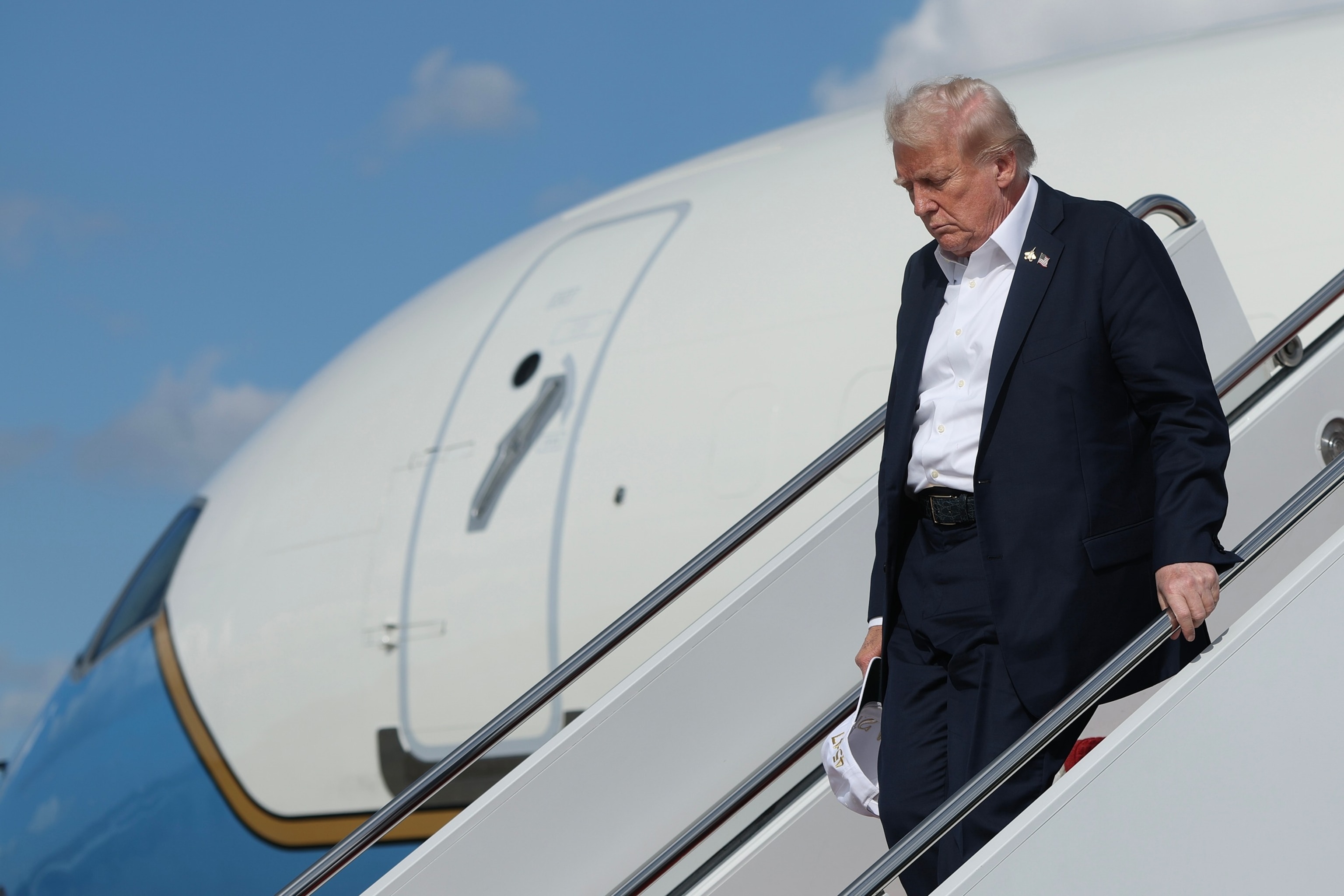Donald Trump leaves Air Force One on September 26, 2025 at the Andrews joint base, Maryland.